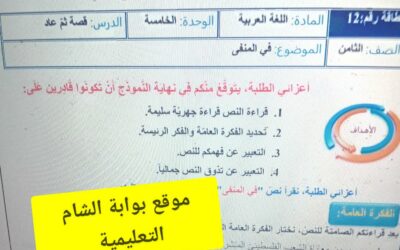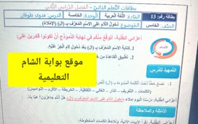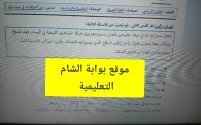 أوراق عمل رائعة ومجابة لدرس في ميناء غزة لمبحث اللغة العربية ثالث