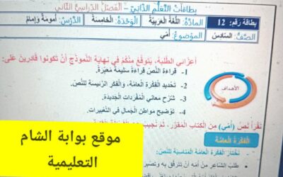 بطاقات التعلم الذاتي لمادة اللغة العربية الصف التاسع الفصل الثاتي للتحميل اضغط هنا للانضمام على تلغرام ا مهات الصف التاسع اضغط هنا