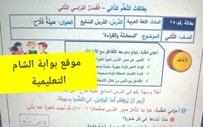 بطاقات التعلم الذاتي لمادة اللغة العربية الصف السابع الفصل الثاني
